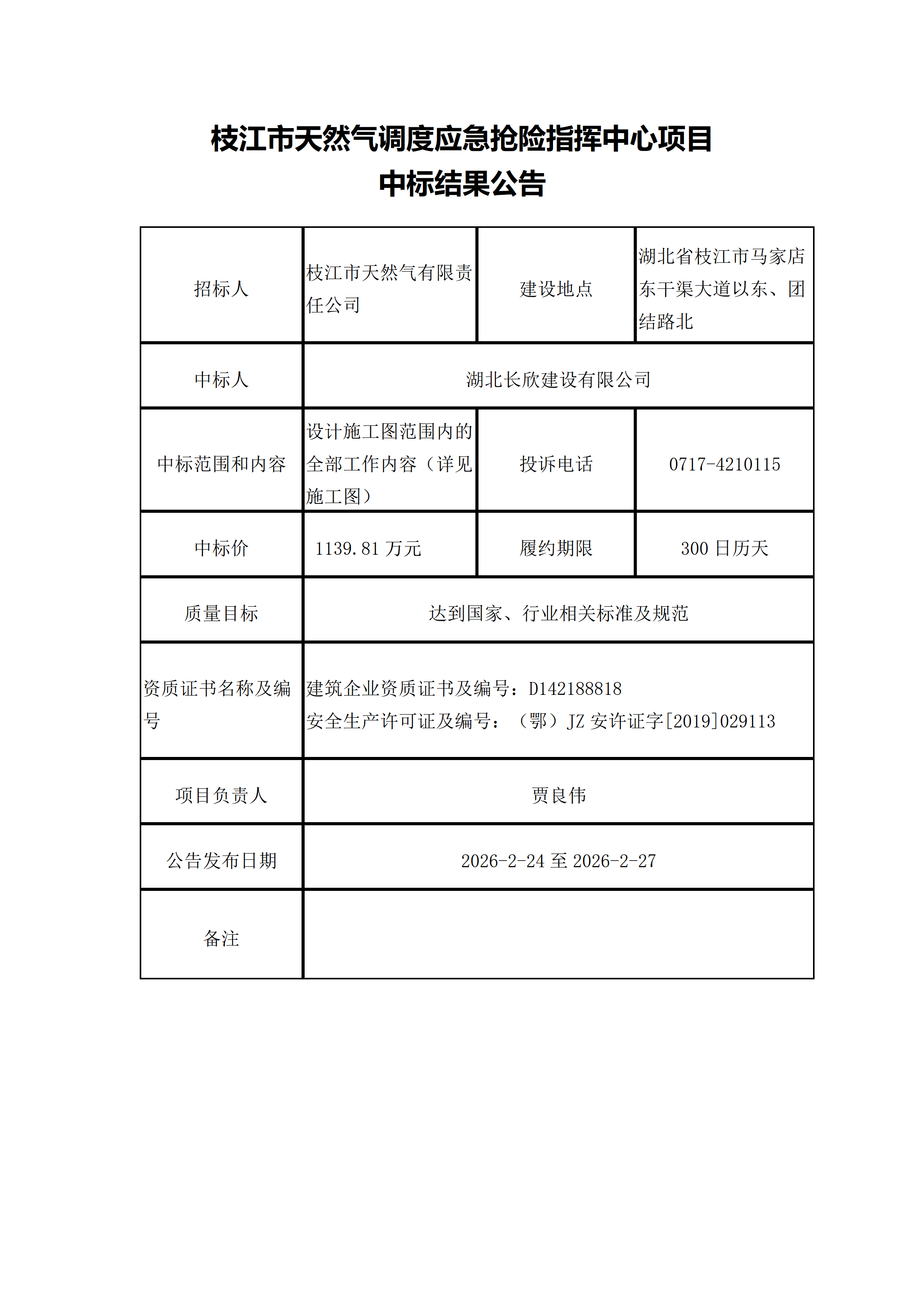 中标结果公告